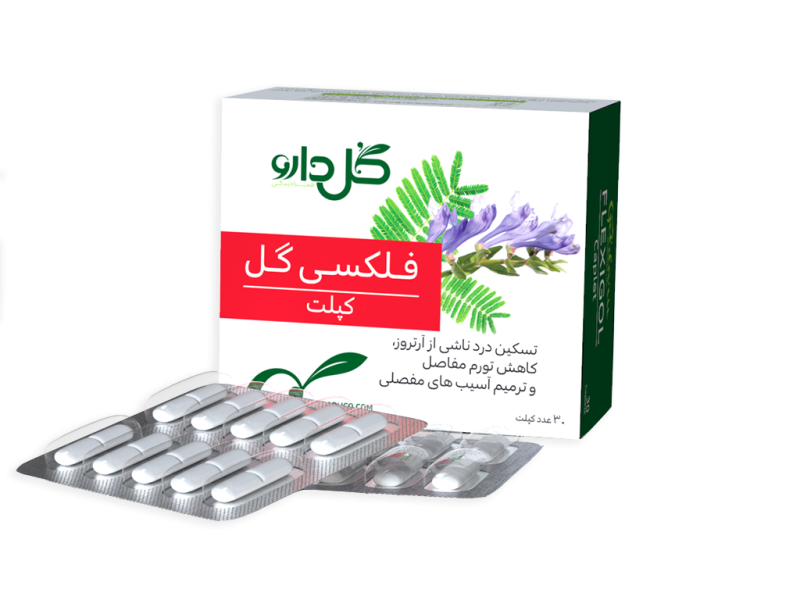 کپلت فلکسی گل گل دارو از مواد موثر گیاه قاشقک، کاد هندی، سولفات کندروایتین، سولفات گلوکوزامین و اسید هیالورونیک ساخته شده که برای تسکین درد ناشی از آرتروز و کاهش تورم مفاصل و همچنین ترمیم غضروف مفاصل دارویی بسیار موثر می باشد.