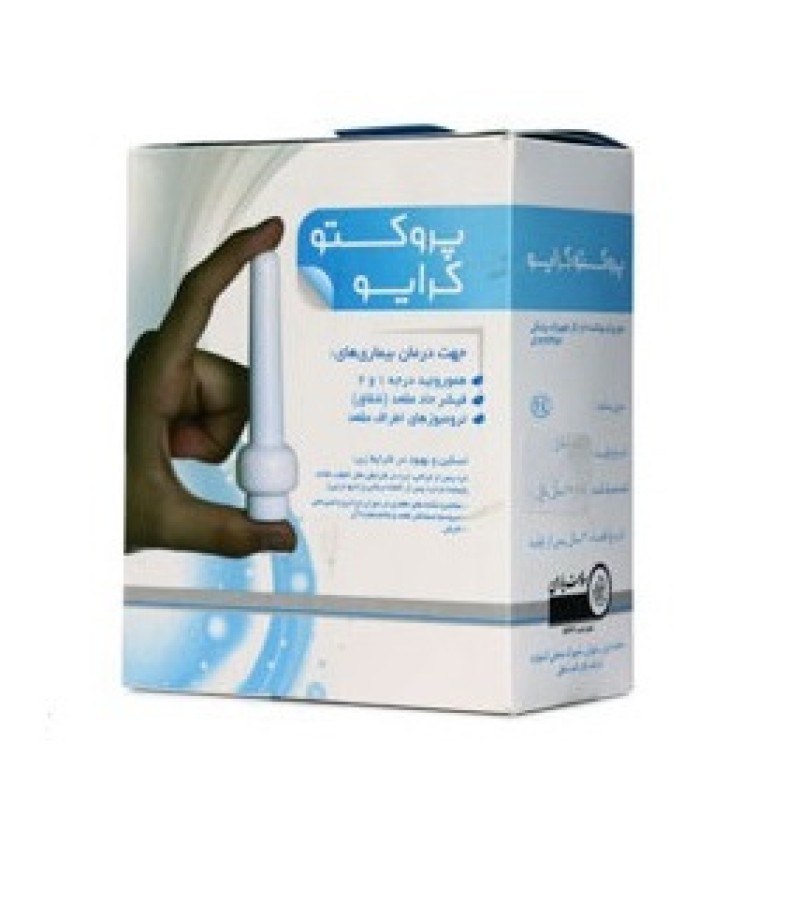پروکتوکرایو procto kryo, وسیله ای است که کاربرد درمانی در بیماریهای ناحیه مقعد و اطراف آن دارد و در بسیاری از موارد باعث بهبودی کامل بیماری می شود. روش درمانی غیر تهاجمی با کاربردی آسان و دارای اعتبار علمی در آلمان و fda امریکا و همچنین مراجع علمی پزشکی ایران میباشد.